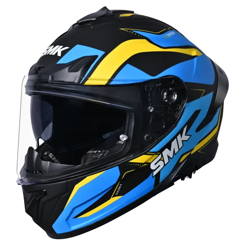 TYPHOON MYSTIC is a Full-face helmet with a compact and aerodynamic shell design that appeals to sports tourers and daily commuters. The Typhoon range of helmets from SMK comes with industry-leading safety and comfort features. Enhanced with amazing graphics and solid colors, it gives you the option to pick one that matches your lifestyle!