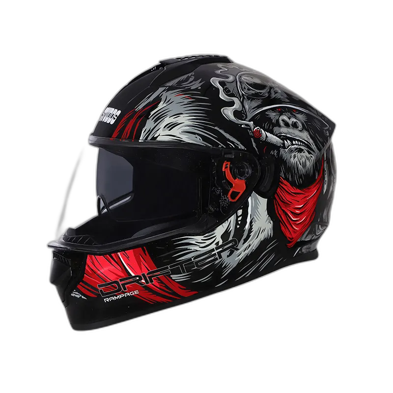 Drifter is a full-face helmet with a high-impact outer shell along with product features like an aerodynamic design, regulated density EPS, dynamic ventilation system with chin and top air vents and hot air exhausts, hypoallergenic and replaceable liner, removable and replaceable lower trim, silicone-coated dual visor with quick release chin strap. It also comes with a special dual visor lever. Drifter comes in various sizes and color options