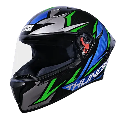 Thunder is one of the most stylish and aggressive helmets from STUDDS. Its aerodynamic design complimented with spoiler and attractive solid colour gives it a perfect look. Thunder is a full face helmet with aerodynamic design , dynamic ventilation system, quick release visor and chin strap.