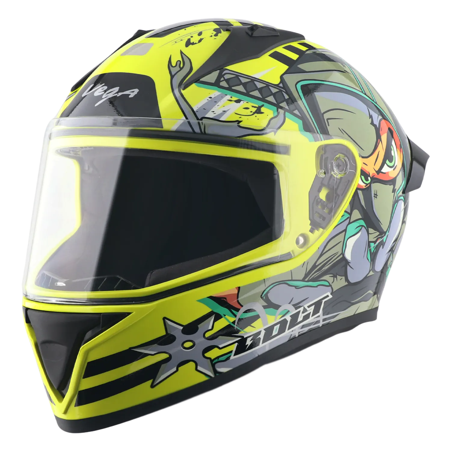 Vega Bolt Bunny Dull Black Neon Yellow Full Face Helmet